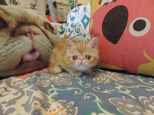 優質異國短毛貓BB(13.2.2016)(紅虎仔)(巳訂!),一個多月,男仔,貓媽媽是玳瑁女(妹妹),爸爸是我的招牌優質異國短毛貓Sunny仔(紅虎仔),一胎二隻,優質遺傳,出生日期:23.12.2015,頭大大,眼圓圓,一字鼻,壽星公額頭,手腳粗壯,面相可愛,性格溫馴!待貓BB戒奶後,最快可3月頭帶牠們回家,包一針及杜蟲!我每星期也會上載貓BB最新的相片及短片和大家分享牠們的成長過程!